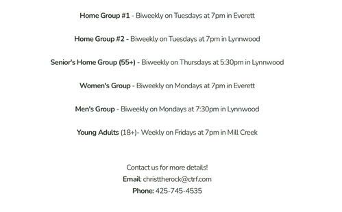 Christ the Rock Groups are close-knit communities committed to navigating life's journey together, shaping our futures, and nurturing our hearts. Each group explores diverse topics, engages in Bible studies, corporate prayer, and shares common interests. At Christ the Rock, we highlight the significance of collectively studying God's word, as we believe that growing closer to God fosters community growth.