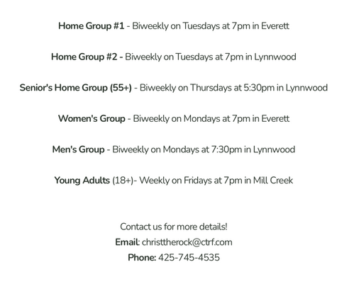Christ the Rock Groups are close-knit communities committed to navigating life's journey together, shaping our futures, and nurturing our hearts. Each group explores diverse topics, engages in Bible studies, corporate prayer, and shares common interests. At Christ the Rock, we highlight the significance of collectively studying God's word, as we believe that growing closer to God fosters community growth.